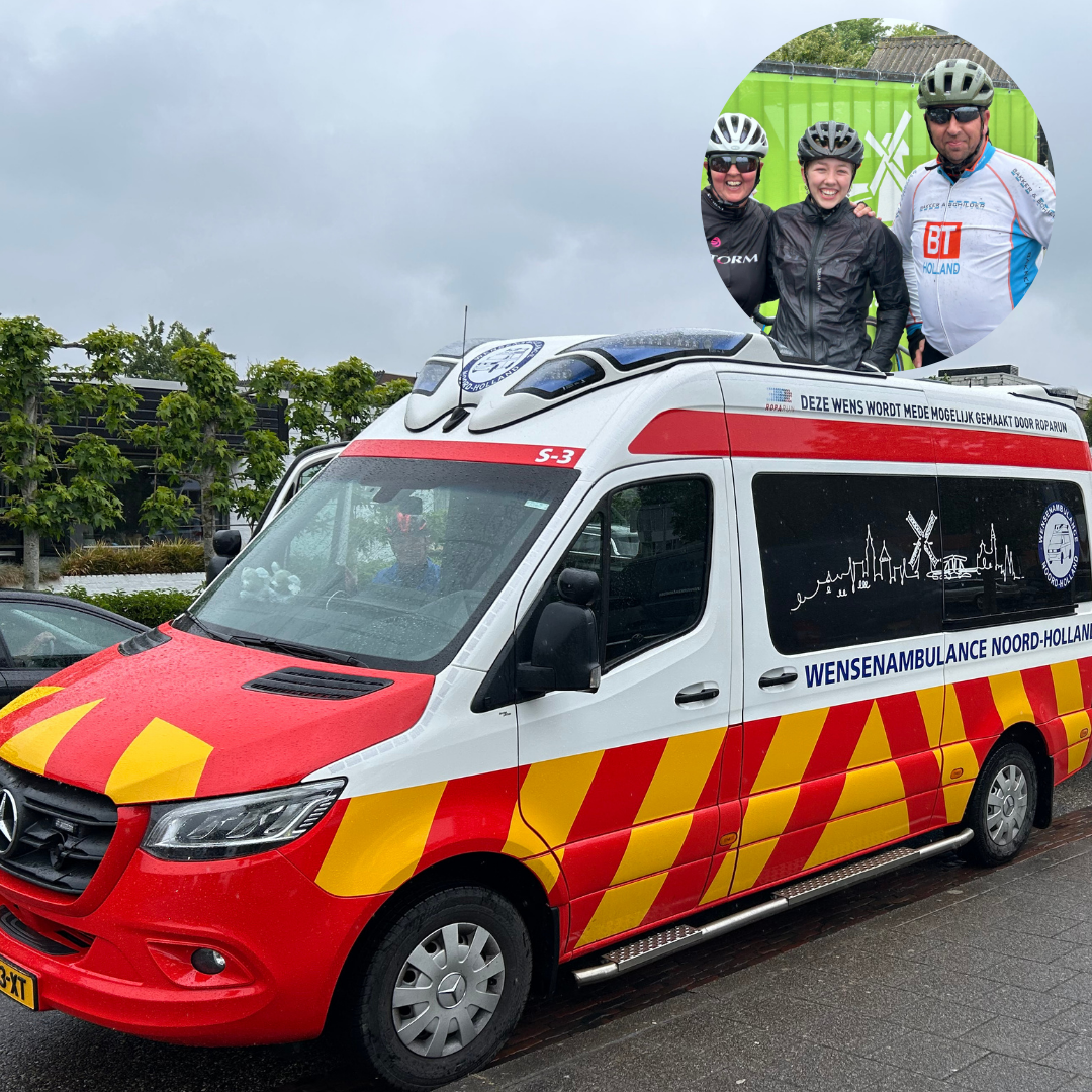Op zaterdag 24 mei stapte René, collega van AB Texel, samen met zijn dochter en zus op de fiets voor een bijzondere sponsortocht: 100 kilometer trappen voor Stichting Wensenambulance Noord-Holland.