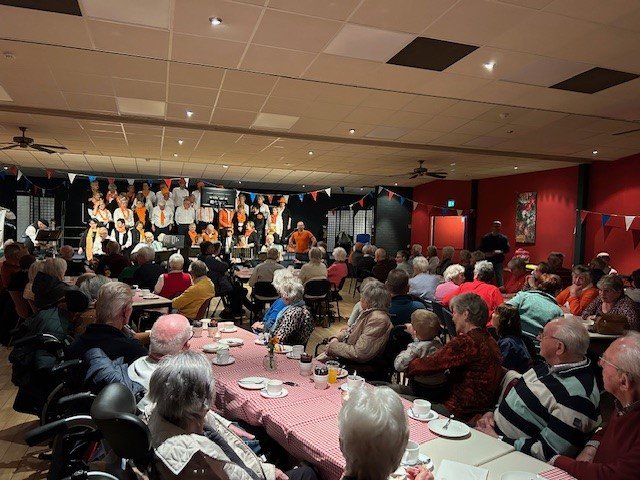 Er waren veel senioren op afgekomen, de zaal zat helemaal vol. De sfeer zat er goed in en er werd een hoop gekletst. Uiteraard werd er koffie geschonken met daarbij overheerlijk gebak. De ouderen hebben enorm genoten van deze gezellige ochtend waarbij er zelfs nog even gedanst werd.